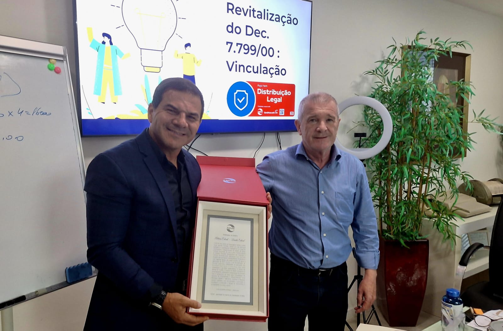 A diretora da ASDAB – Associação dos Agentes de Distribuição fez uma homenagem, nesta última quinta-feira (22), ao empresário e presidente do Sindatacado, Antonio Cabral.